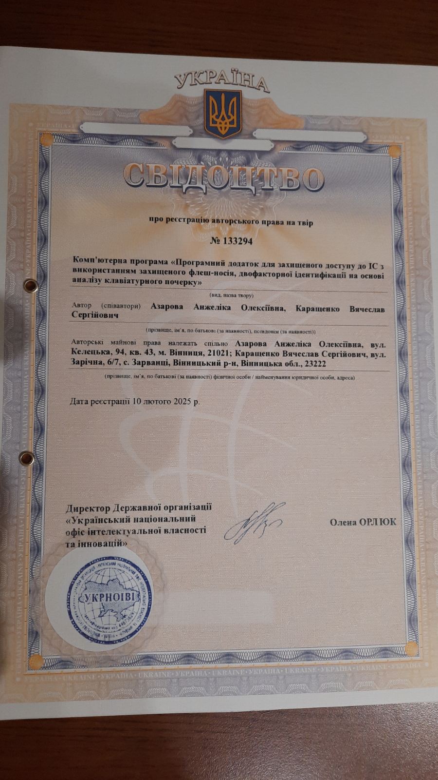 Комп`ютерна програма «Програмний додаток для захищеного доступу до ІС з використанням захищеного флеш-носія, двофакторної ідентифікації на основі аналізу клавіатурного почерку»