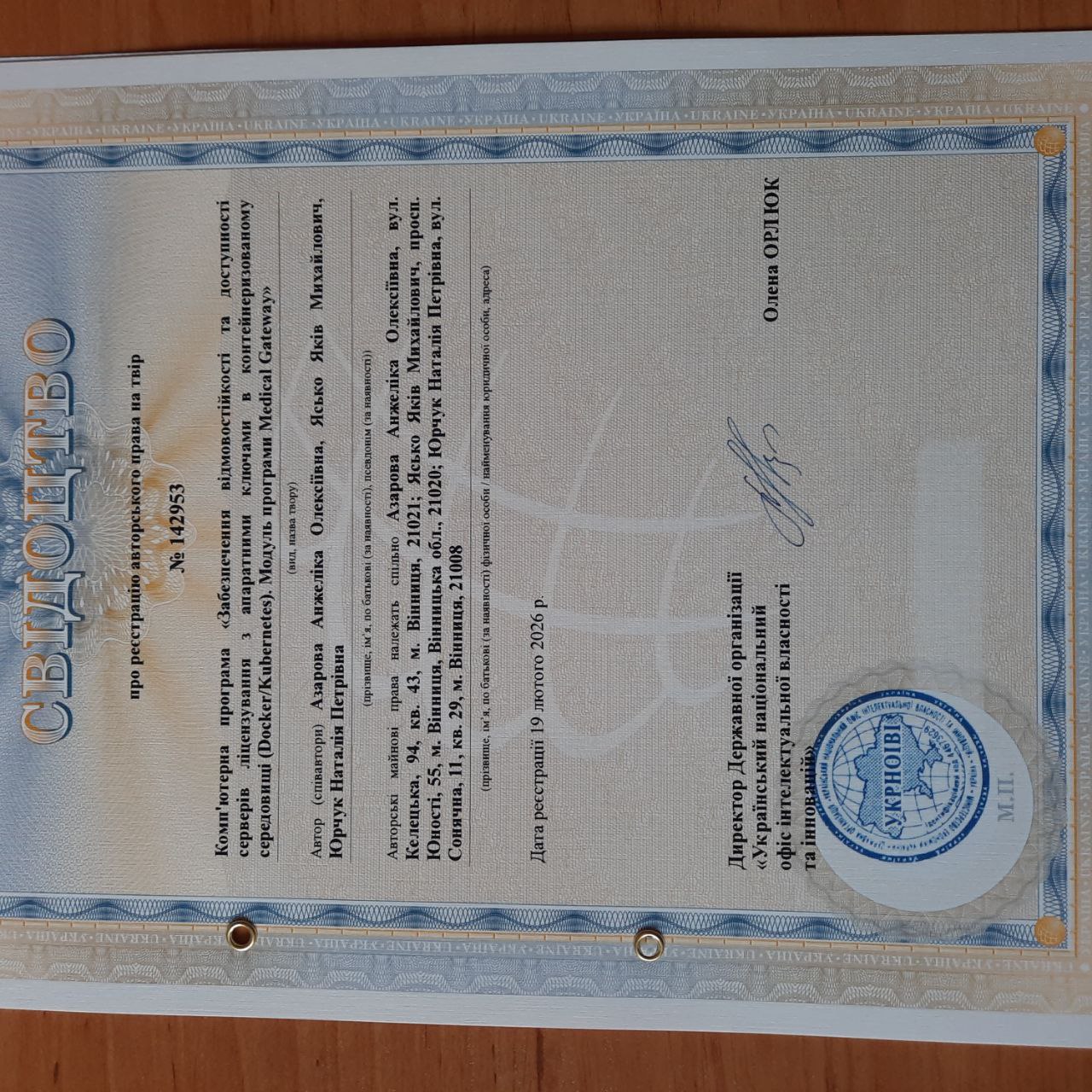 • Свідоцтва про реєстрацію авторського права на твір
